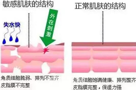 敏感肌的形成很可能是多种原因共同导致的结果,但这较根本的原因还是皮肤屏障受损,也就是皮肤表面失去了正常的保护功能而出现皮肤水分丢失,皮肤出现干燥、脱屑或瘙痒;同时皮肤表面的病菌容易经过受损的皮肤屏障而进入皮肤内部,从而进一步引发皮肤炎症反应。