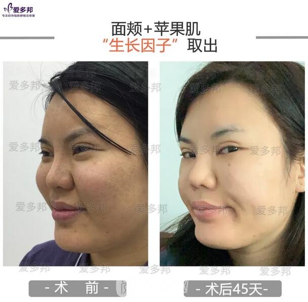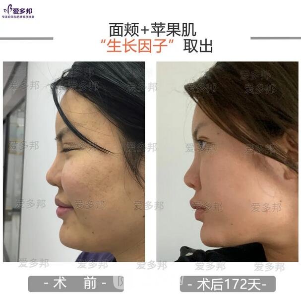 “”取出术后改良明X,面颊和苹果肌的高度降低,面部形态臃肿,组织堆积等问题均得到有解决。