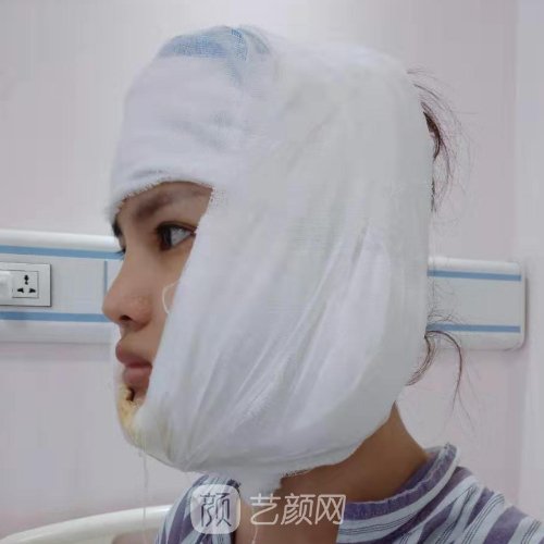 整个面部被纱布包覆盖着,有一些很不舒服,疼痛肿胀,整个像一个大粽子一样,真的是太难看了。在术前医生就把术后这些情况和我交代了,所以我没有着急,医护人员也为我准备了清淡的饮食,观察了有半个月的时间,没有什么不良情况,我可以回家休养。